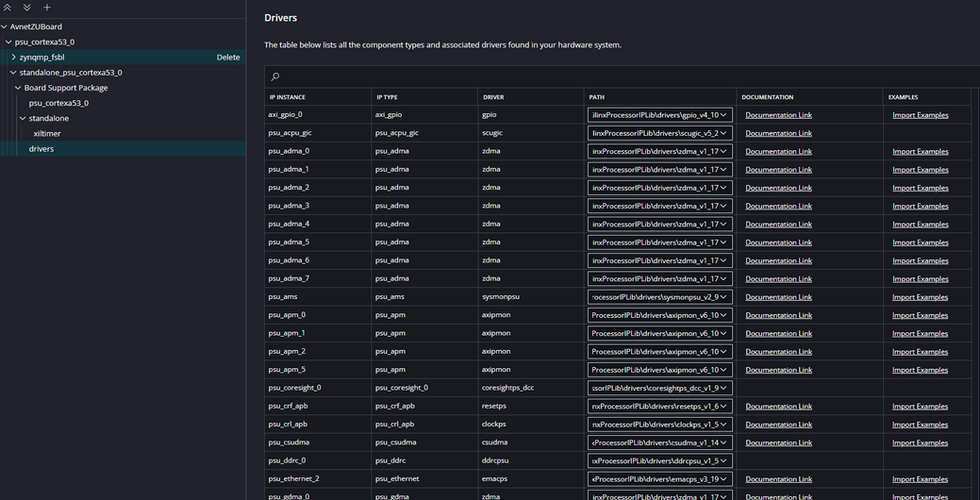 Exploring the standalone application BSP, you will see the customization elements for the BSP including the BSP libraries, compilation options, and standalone BSP options such as Stdin/Stdout etc. along with library and driver configurations.